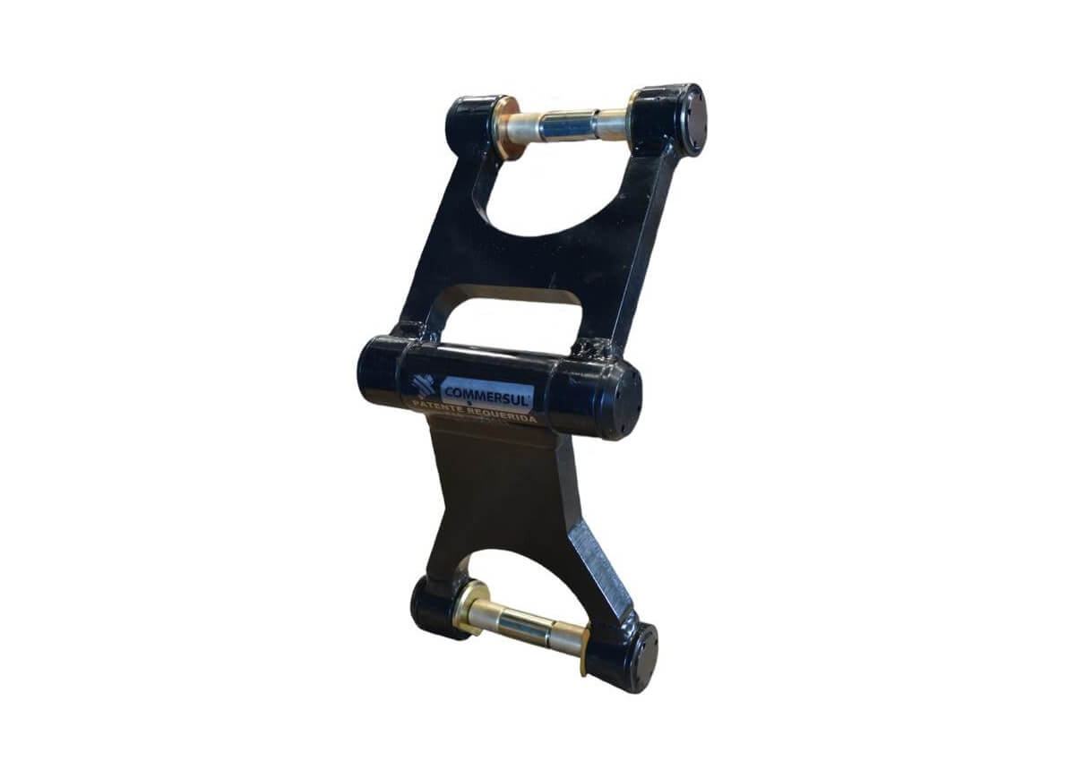 Tesoura de ligação, composta por rolamentos com duas carreiras de esferas, o que as tornam mais reforçadas e resistentes, não sendo necessário troca de buchas e pinos, lubrificação a cada 100 horas e cinco anos de garantia.